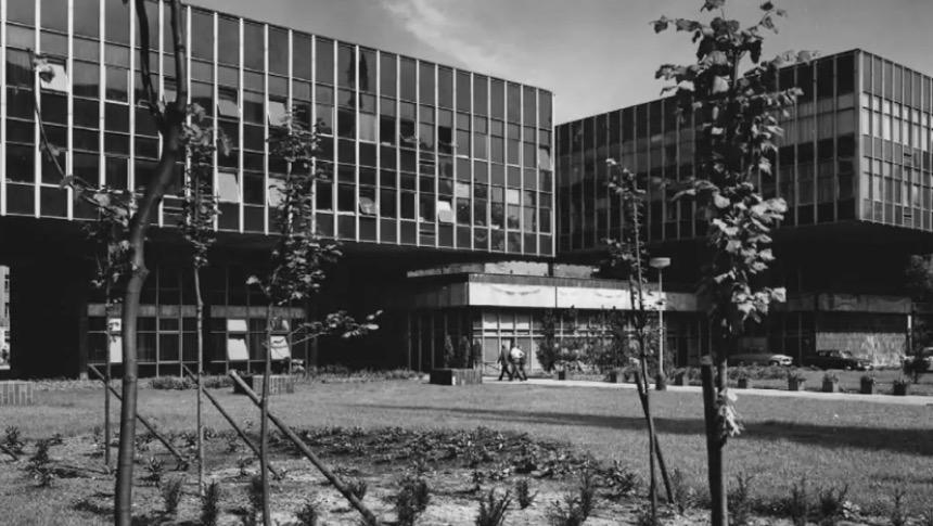 Komplex tří levitujících kvádrů, který Karel Prager navrhl společně s Jiřím Kadeřábkem na přelomu 60. a 70. let, představoval ve své době mimořádně progresivní pojetí administrativní architektury. Konstrukční experiment, v němž byly pavilony zavěšeny na ocelové nosné jádro, umožnil vytvořit jedinečnou vzdušnou kompozici.